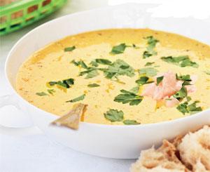 Krämig kokossoppa med lax och sesam