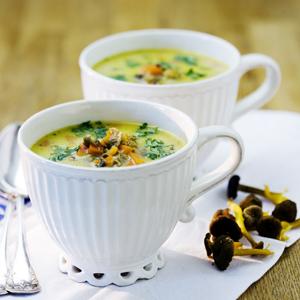 trattkantarellsoppa med morötter och persilja