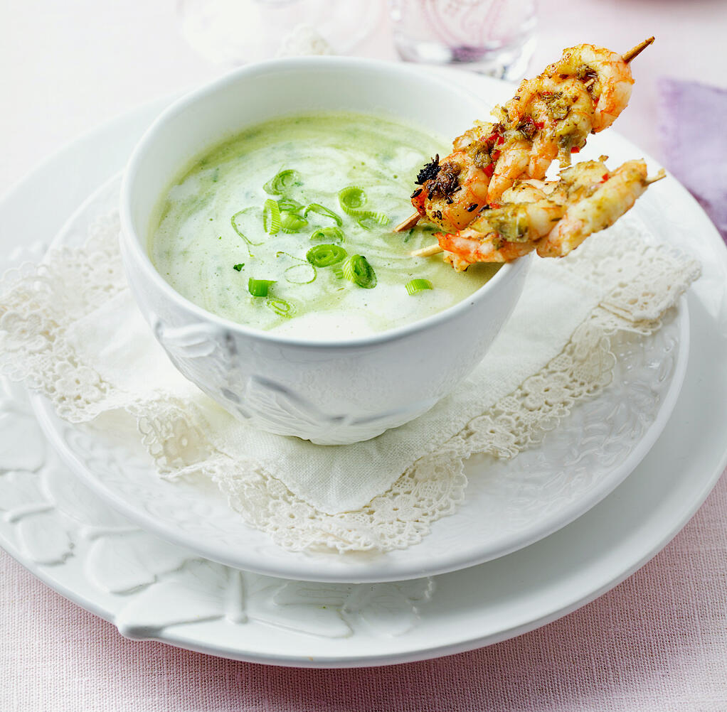 Rucolasoppa med räkspett