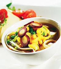 Soppa med äggnudlar, majs och ärter