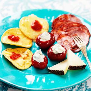 Tapastallrik med pecorinoost och fyllda minipaprikor