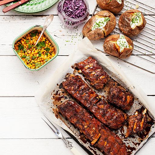 Sötkryddiga ribs med bakad potatis