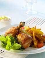 Grillade kycklingben med curryrostade rotfrukter
