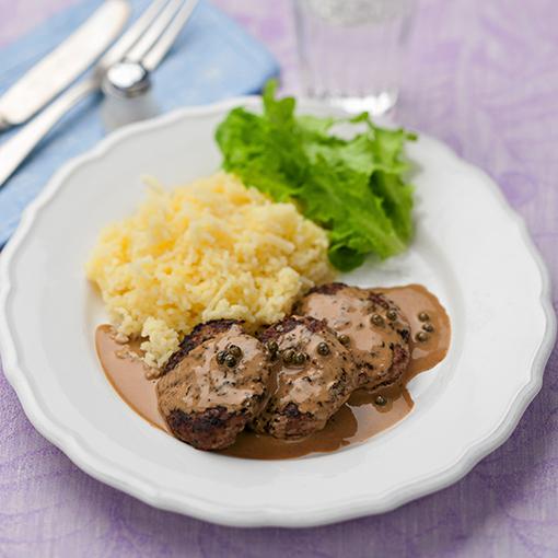 Färsbiffar med grönpeppar