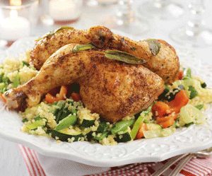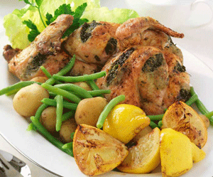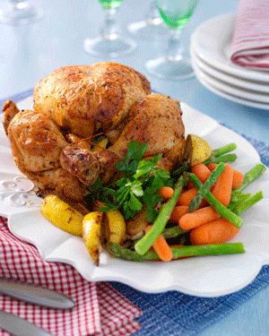 Stor ugnsklar Gårdskyckling med citronsås och haricots verts