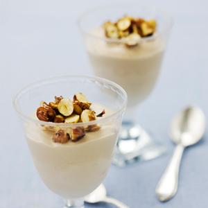 Mjölkchokladsemifreddo med hasselnötskrisp