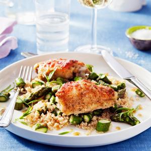 Dragonkyckling med sparrisbulgur