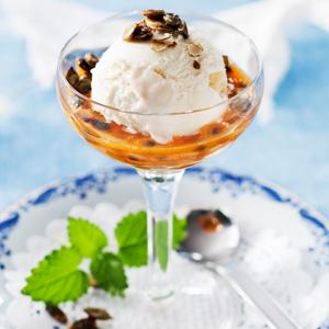 Glass med passionsfrukt och honungsrostade pumpafrön
