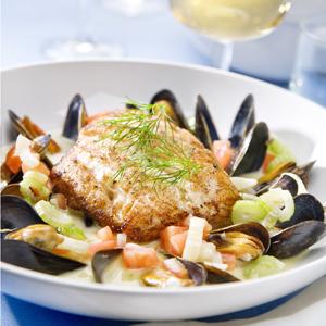 Stekt långa med blåmusslor