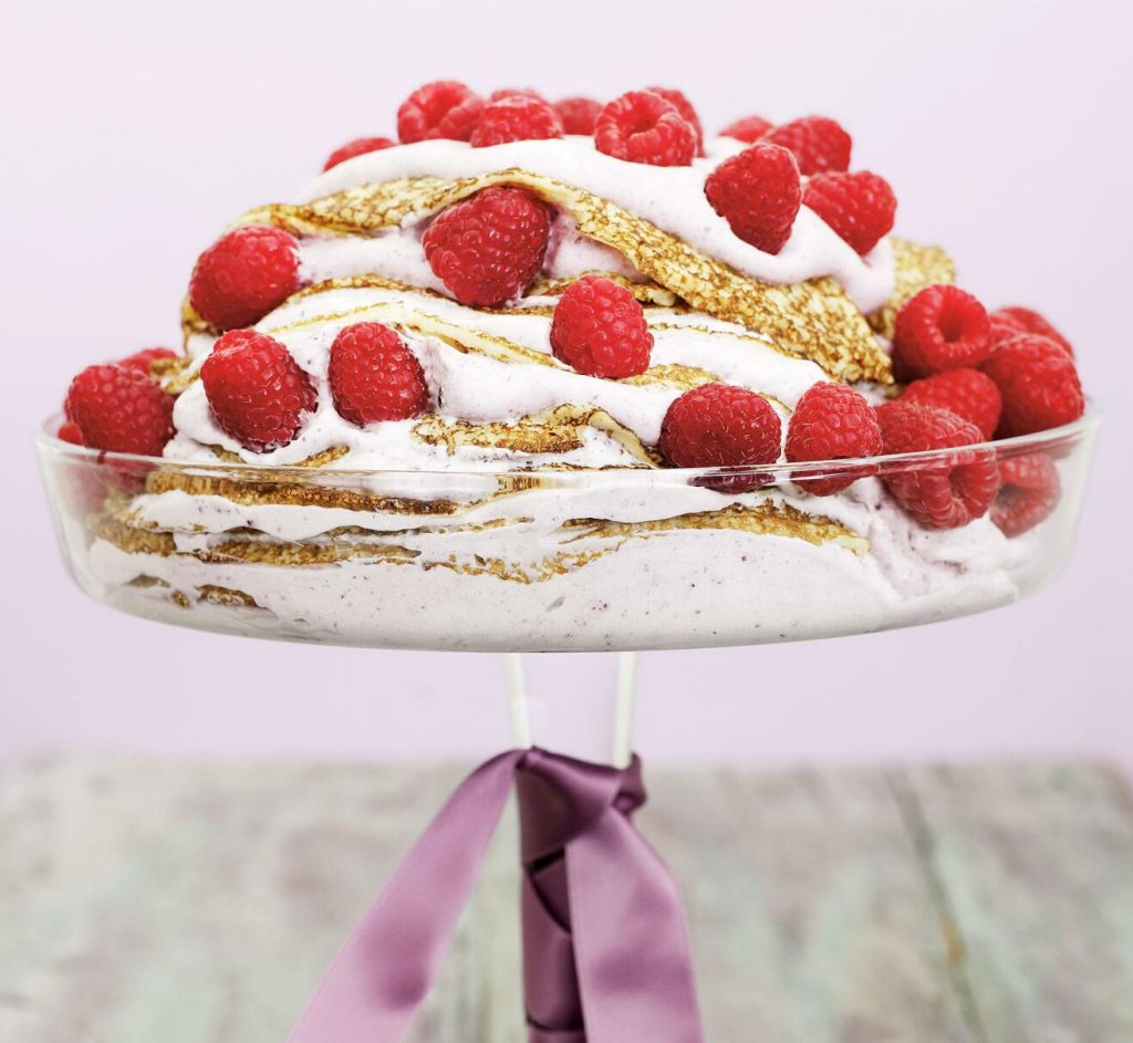 Pannkakstårta med färska hallon
