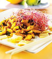 Wokad kycklingfilé med grönsaker och nudlar