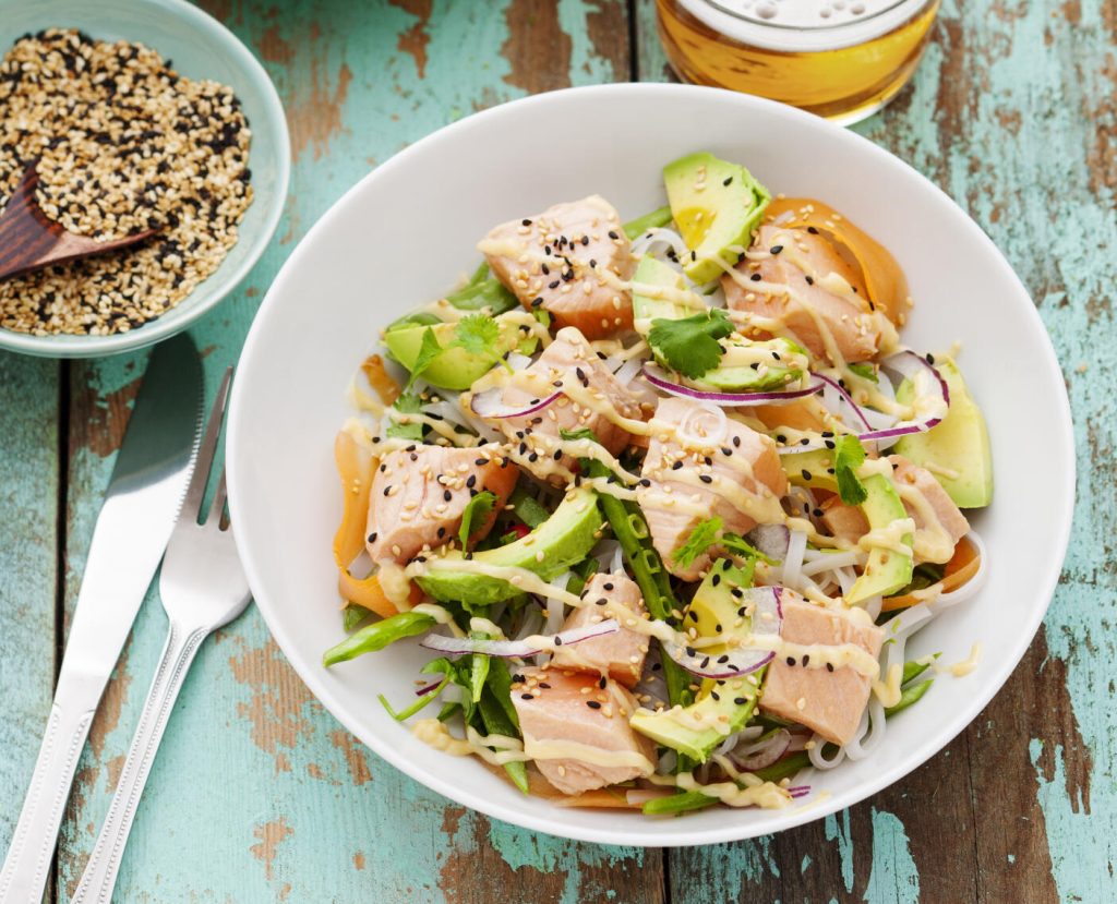 Inkokt lax med nudelsallad