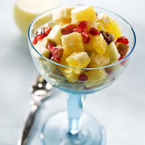 Fruktsallad med superenkel vit chokladsås