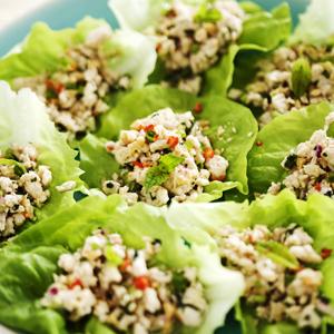 Fläsk- och räkröra i salladsblad