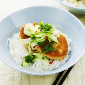 Laxbiffar med kokosnudlar