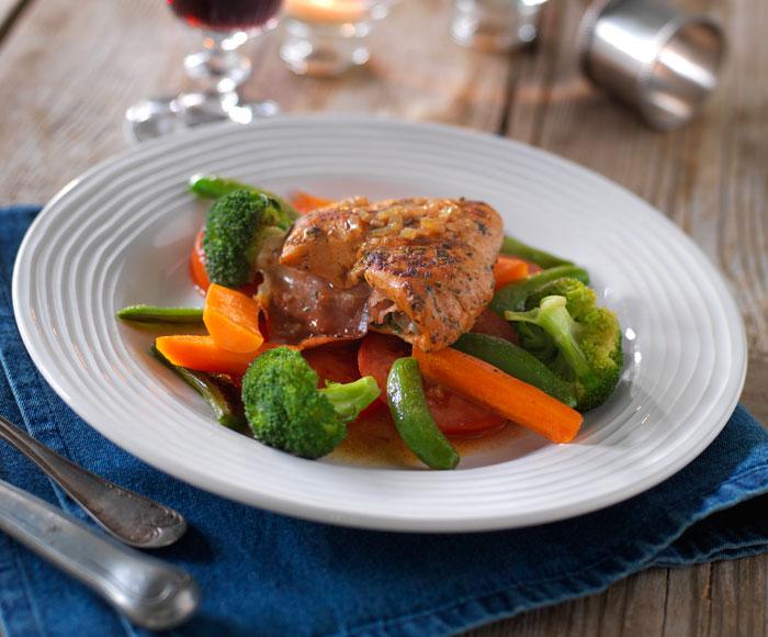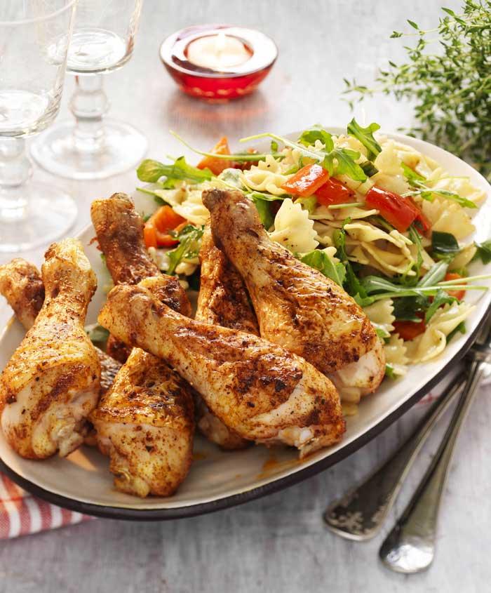 Varm pastasallad med grillad kyckling