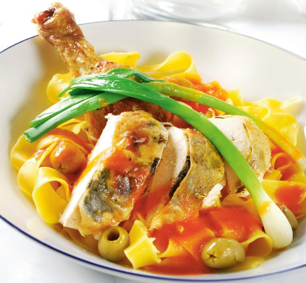 Hel majskyckling med paprikasås