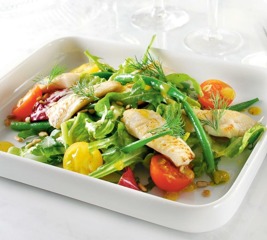 Sallad på abborre med senapsvinägrett