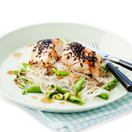 Teriyakitorsk med glasnudlar