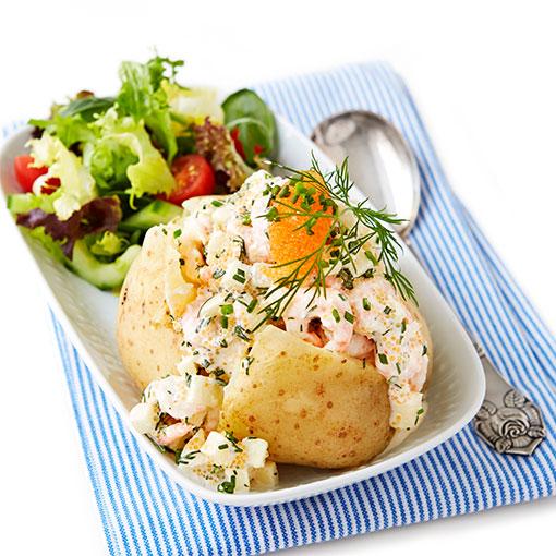 Bakad potatis med lyxig räkröra