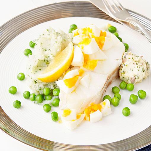 Torsk med ägghack och dilligt mos
