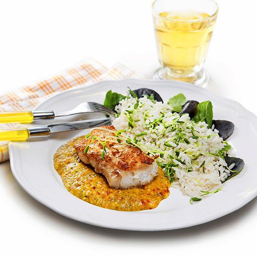 Kokospanerad torsk med chilimangosås