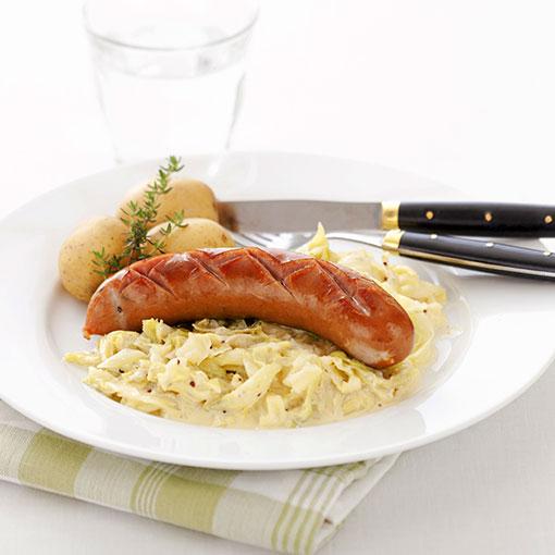 Bratwurst med gräddstuvad kål