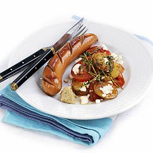 Stekt korv med getostpotatis