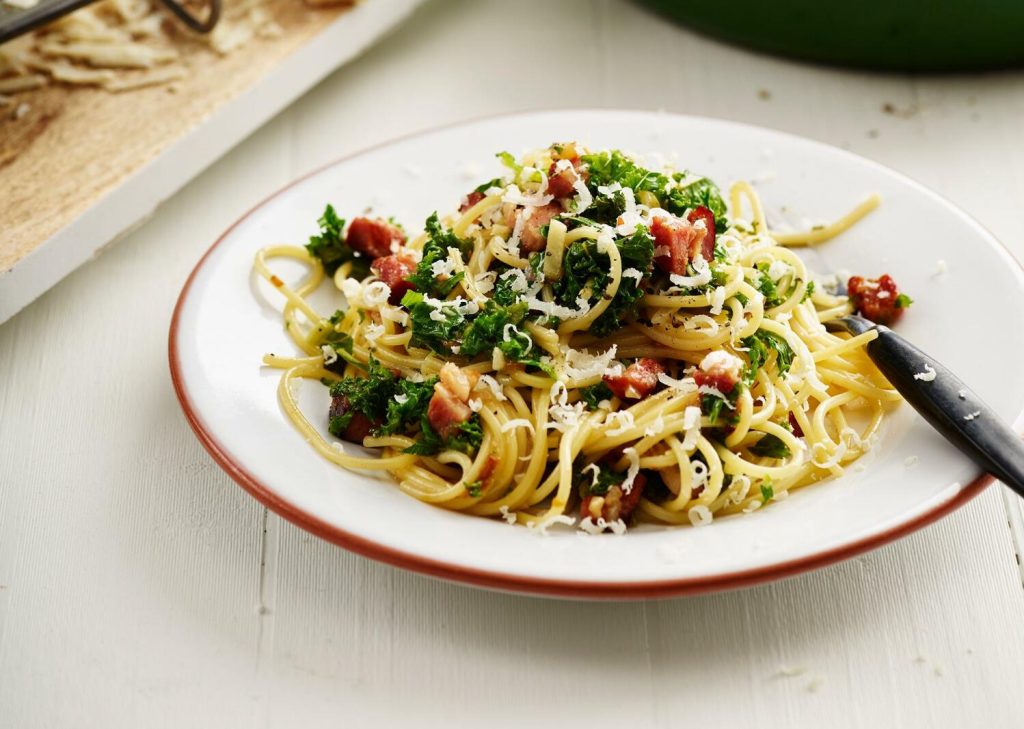 Carbonara med fräst grönkål