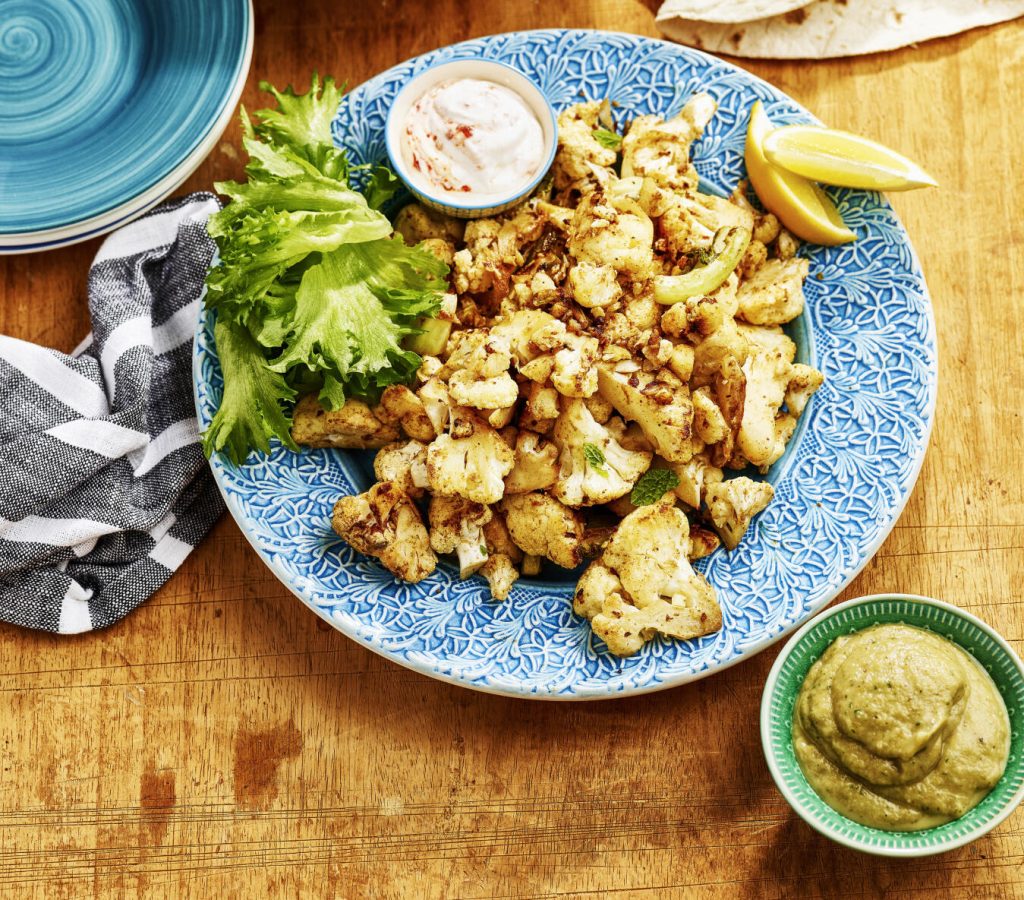 Kryddig blomkål med aubergineröra