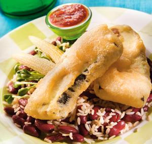 Friterad squash med het tomatsås
