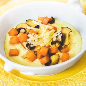 Krämig polenta med råstekt pumpa