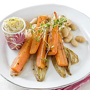 Morotstallrik med citronhummus