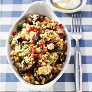 Bulgur med aubergine och kikärter