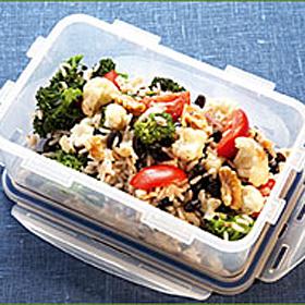Knapriga grönsaker med fullkornsris