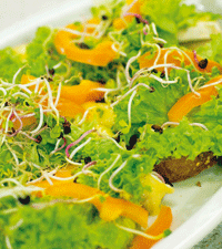 Ljummen ostmacka med brie, paprika och böngroddar