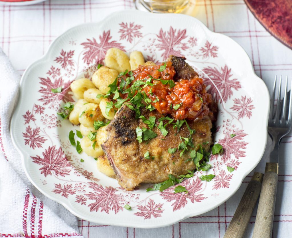 Dijonfylld kotlett med stekt gnocchi
