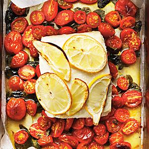 Citronbakad fisk med tomat och basilika
