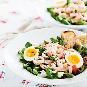 Räk- och sparrissallad med citrondressing