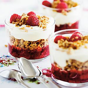 Hallon med havrefras och vaniljfluff