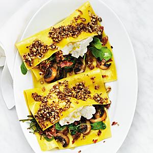 Öppen lasagne med spenat, ricotta och mandelpesto