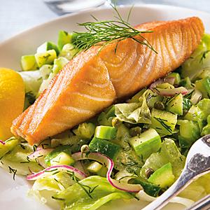Stekt lax med smörfräst gurka