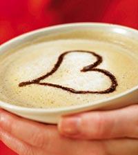 Kaffe latte med chokladhjärta